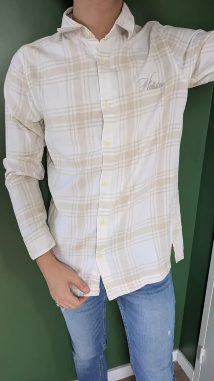 Chemise à carreaux blanc écru Hollister XS (taille plus grand, convient pour un M-S)