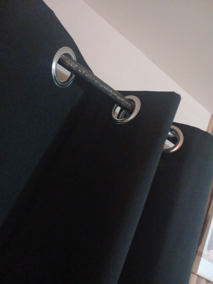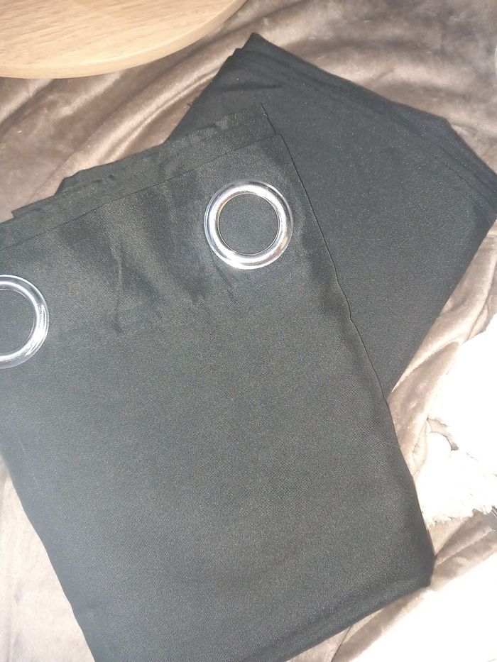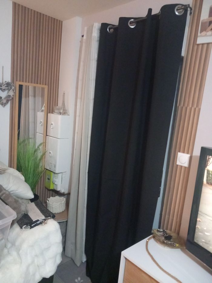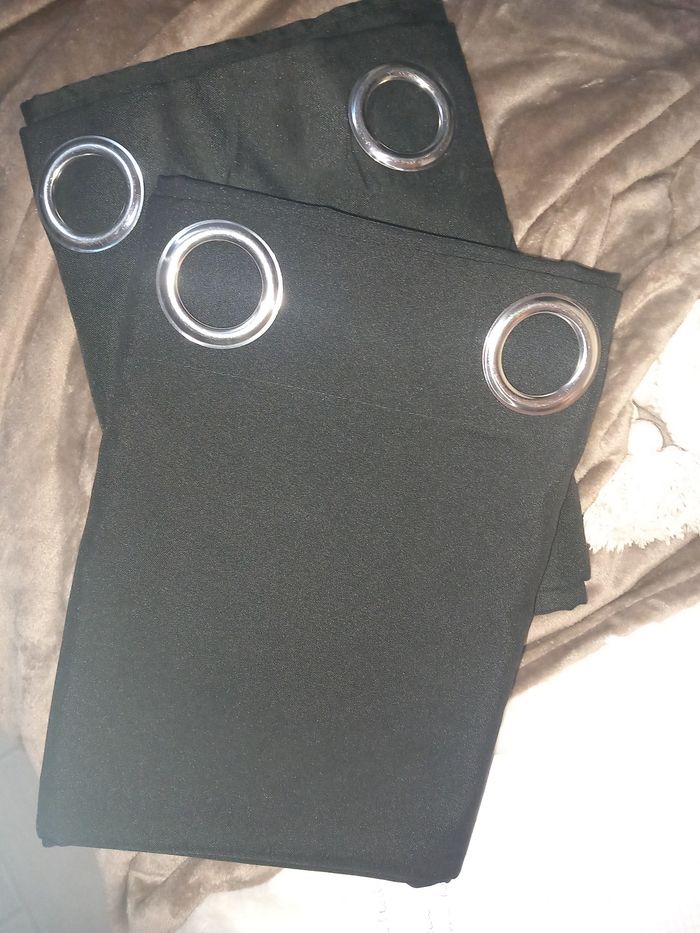 1 paire double rideau noir semi opaque noir, état neuf. Largeur : 140 cm Hauteur : 240 cm #doublerideaunoir
