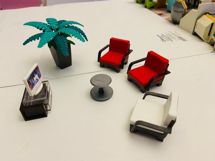 Salon playmobil Avec 3 fauteuil Table de salon Meuble de tv Télévision Plante Pour maison playmobil
