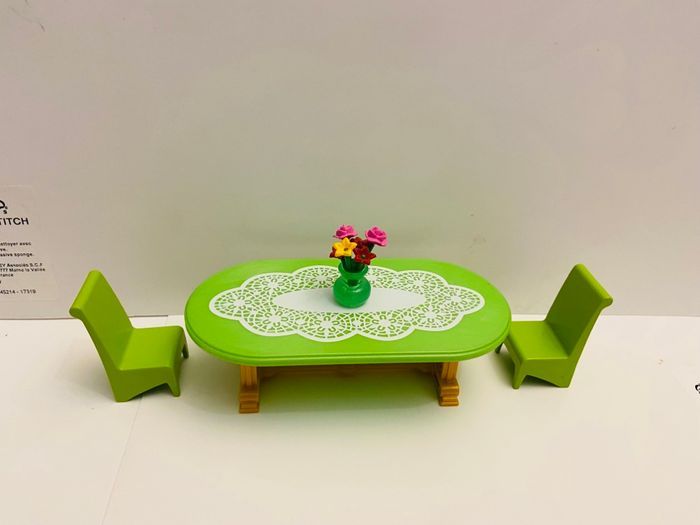Table salle à manger playmobil Avec ses 2 chaises et son bouquet de fleurs Pour maison playmobil