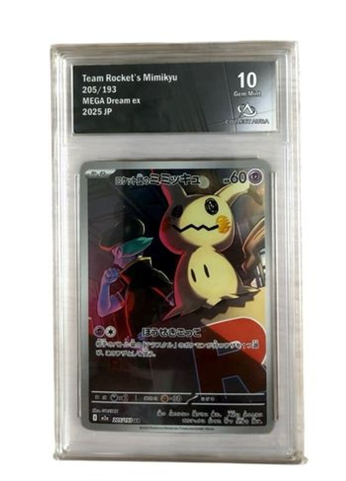Magnifique carte Pokémon japonaise Team Rocket’s Mimikyu 205/193 issue de la série japonaise MEGA Dream ex, correspondant à la série française Héros Transcendants très recherchée actuellement.