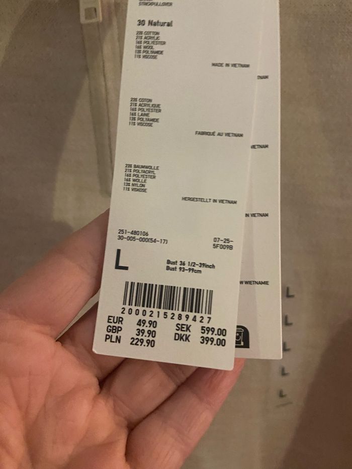 Valeur 49,99€ ( coton , laine , polyester)