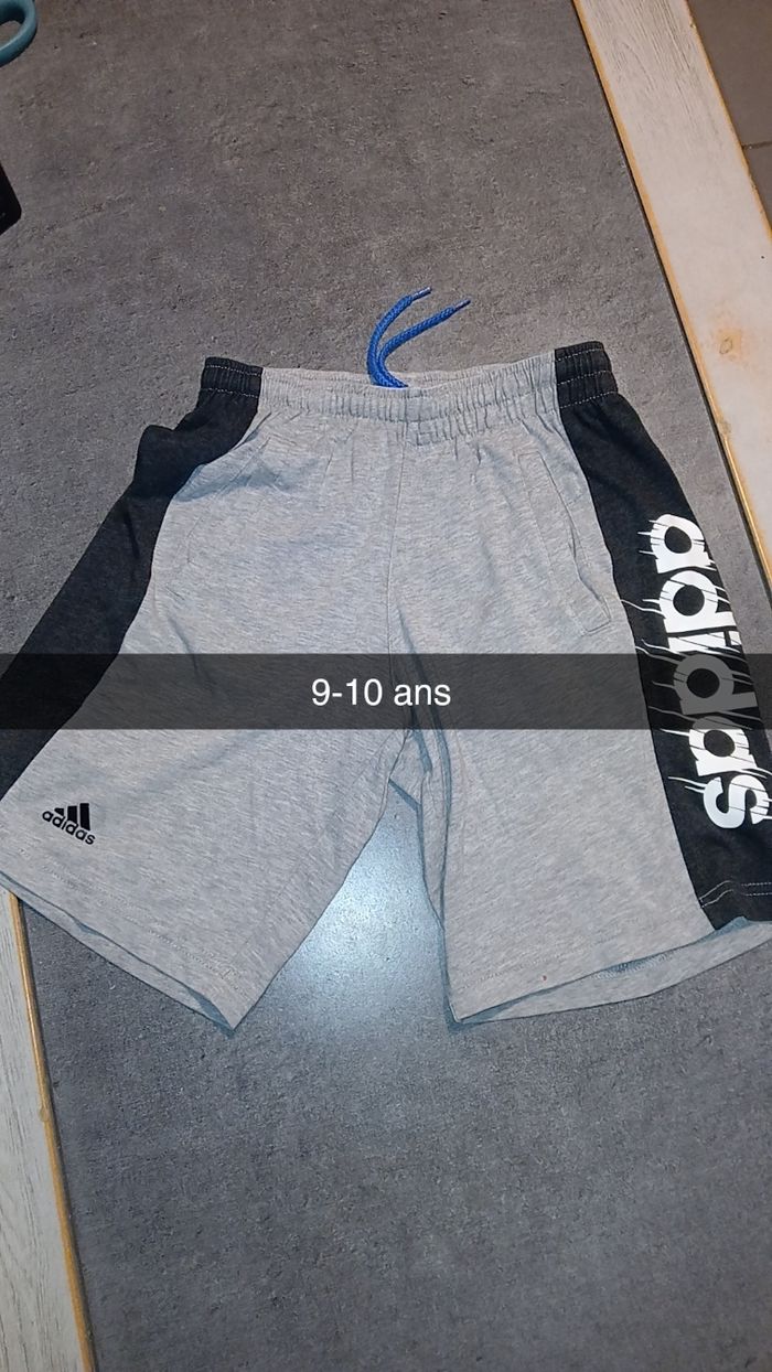 Short gris, de marque adidas, avec cordon a la ceinture, bon état , une légère tache voir la quatrieme photo, d'où le petit prix. Taille 9-10 ans