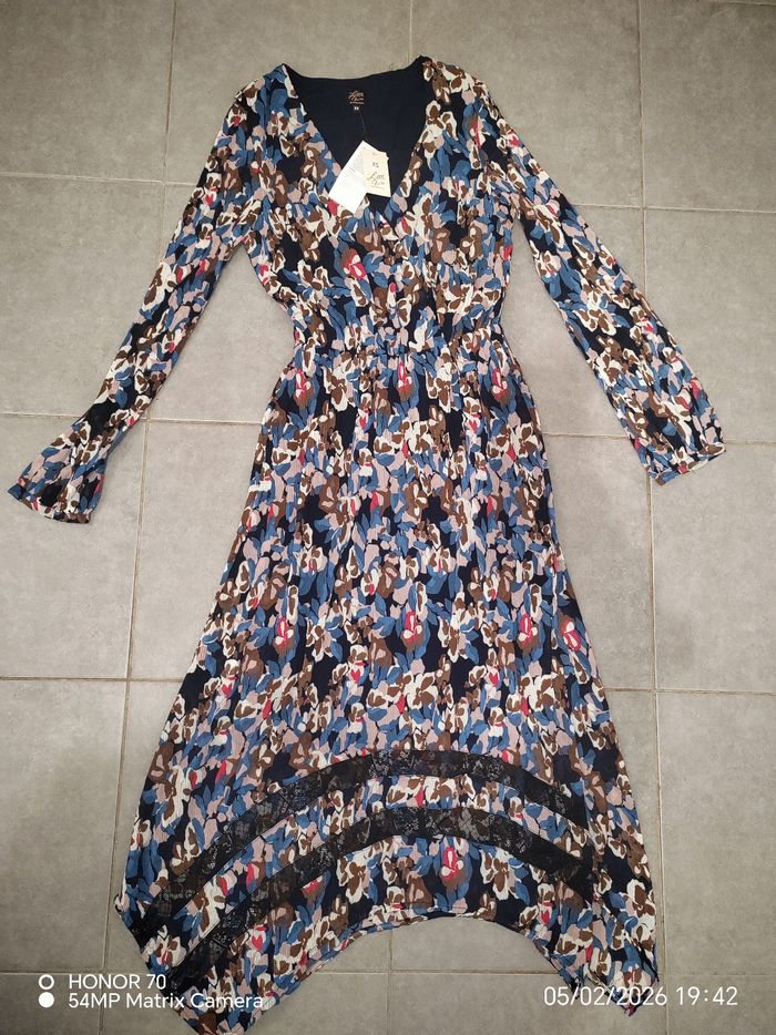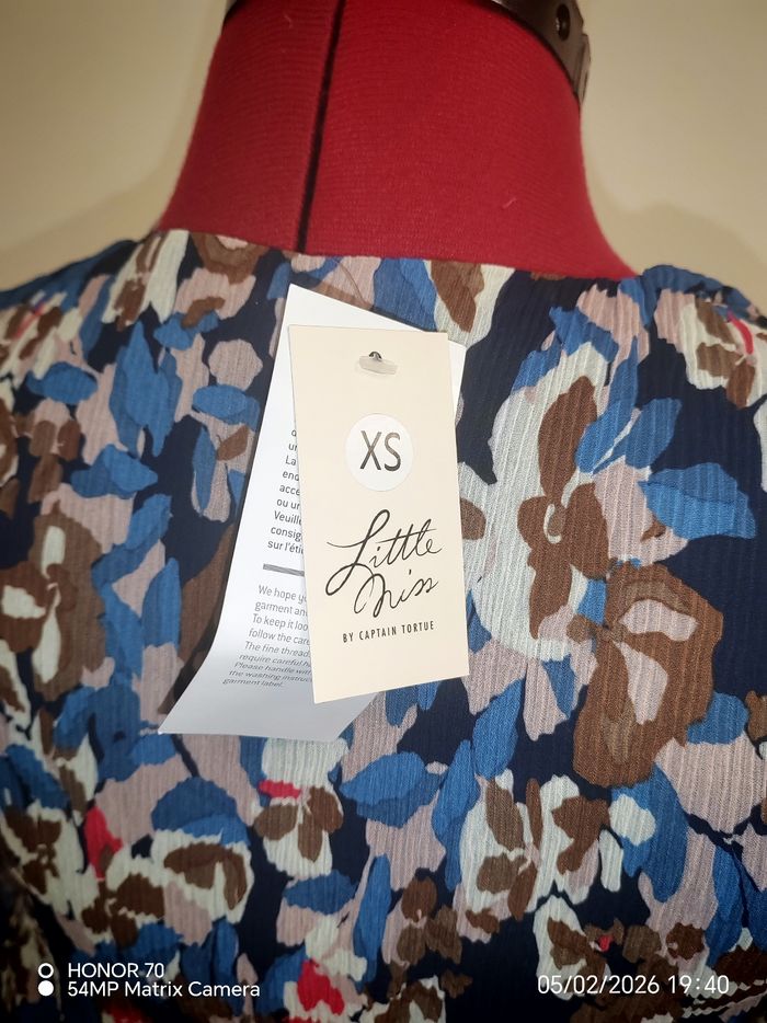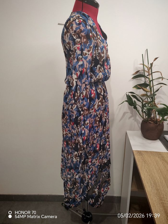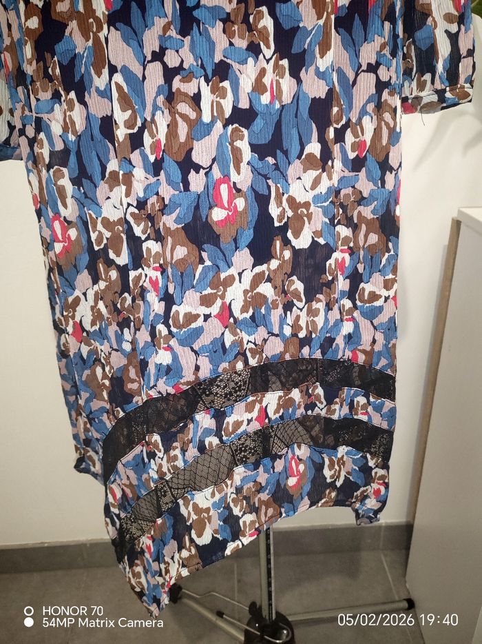 Doublee Manches longues Tissus plissé fleuri Matière extensible Largeur à plat sous les aisselles 40 cm Longueur totale 122 cm #geliscyrilletaille34 #geliscyrilletailleXS Ref3/CA8