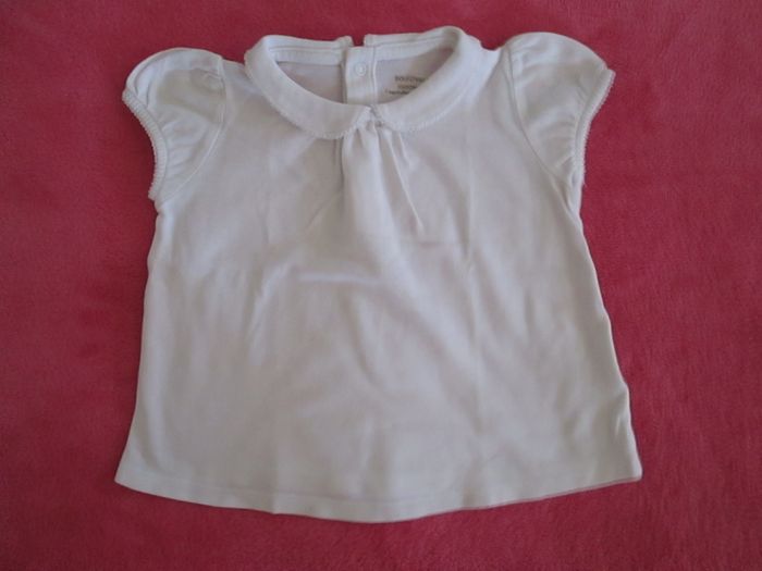 Vends blouse blanche Bout'Chou en coton bio. Col Claudine et boutons-pression en haut du dos. Taille 18 mois. Comme neuve, portée 1 fois. Pour plus de choix, allez consulter mes autres annonces.