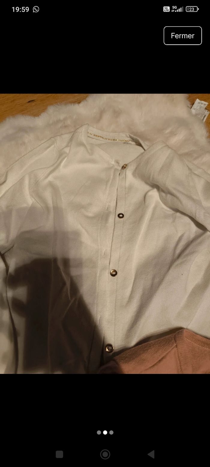 Lot de deux gilet Blanc et Rose Très bon état Taille 8 ans