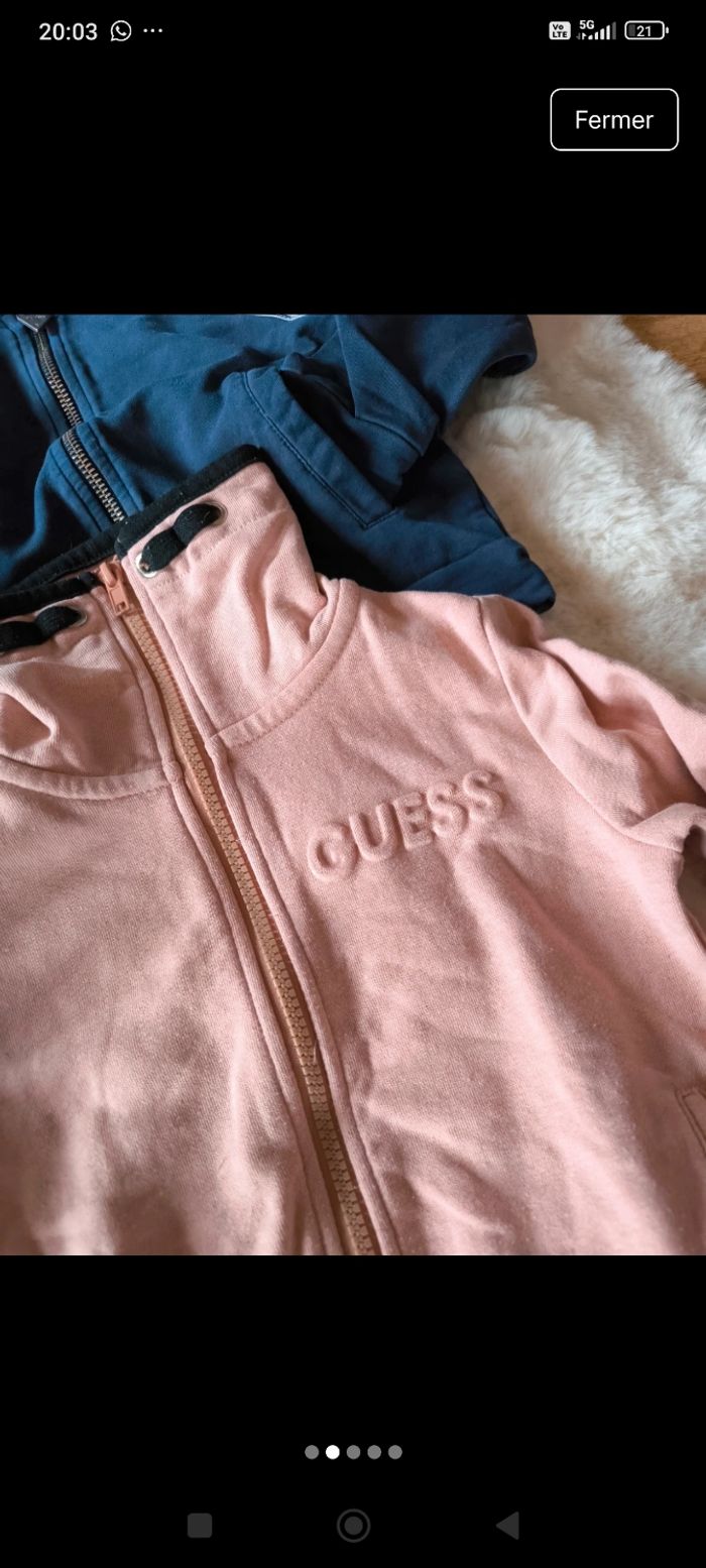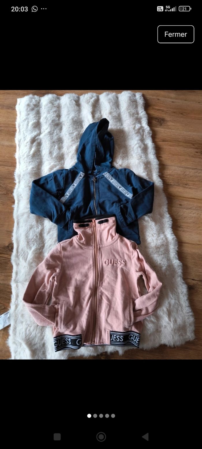 Lot de deux gilet Guess un rose et un bleue marine En très bon état taille 4 ans