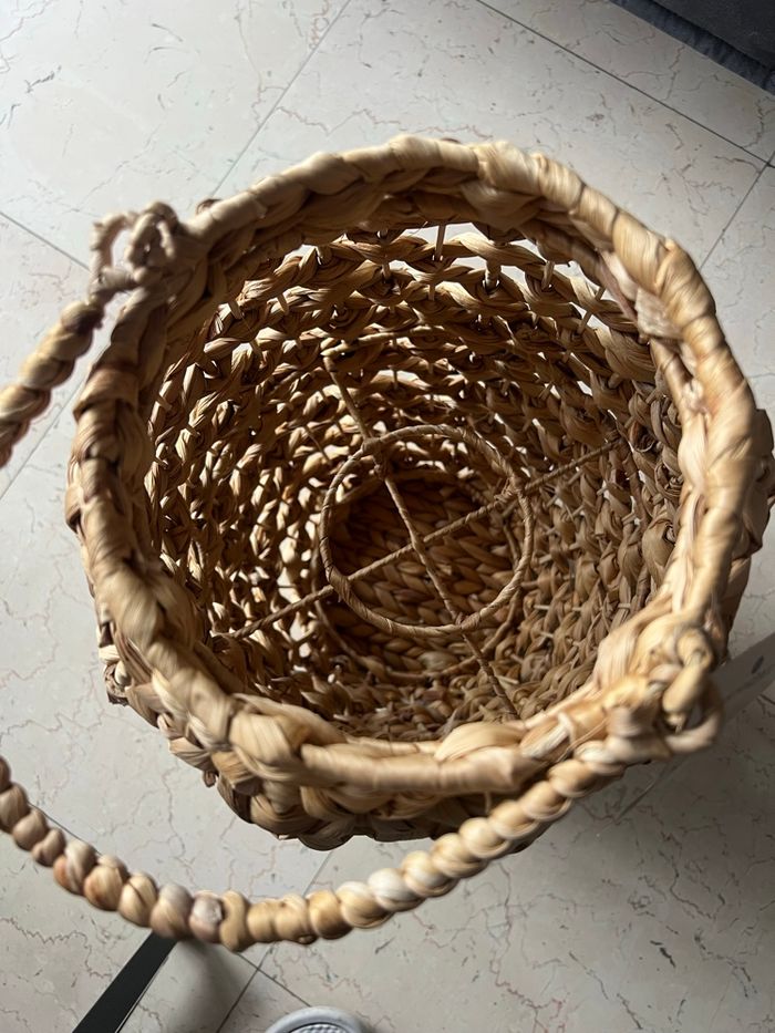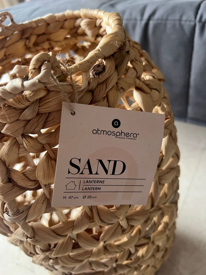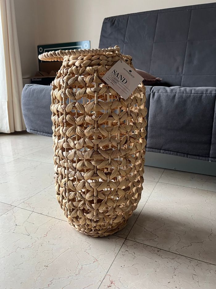 Lanterne / Photophore / Lampe à poser Matière du cadre extérieur - couvercle - dôme : Jacinthe d'eau Matière de l'accroche / anse : Jacinthe d'eau, Acier Ampoule incluse : Non Usage : Intérieur Dimensions : D.25 x H.47 cm Poids : 1,3 Kg Complètement neuve. Jamais servie. Avec étiquette. Acheté au prix de : 29,99€