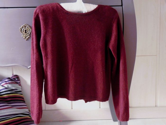 Gilet cachemire laine fille 4 ans Jacadi bordeaux hiver TBE - photo numéro 3