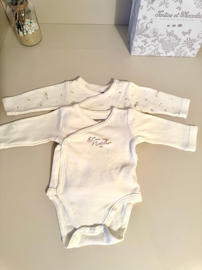 6 bodys en taille naissance de chez orchestra Ouvertures croisées devant Tous en très bon état voir neuf, très peu servi voir pas du tout pour certains. Maison non fumeur Tous les vêtements sont lavés et repassés.