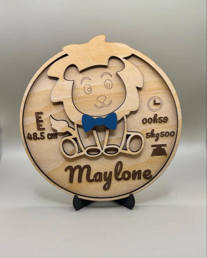 Plaque naissance personnalisée Motif animal (plusieurs modèles disponibles) Adaptable avec ou sans les informations complémentaires (Taille,poids,mesure) Pour toute autre demande, contacter moi par message