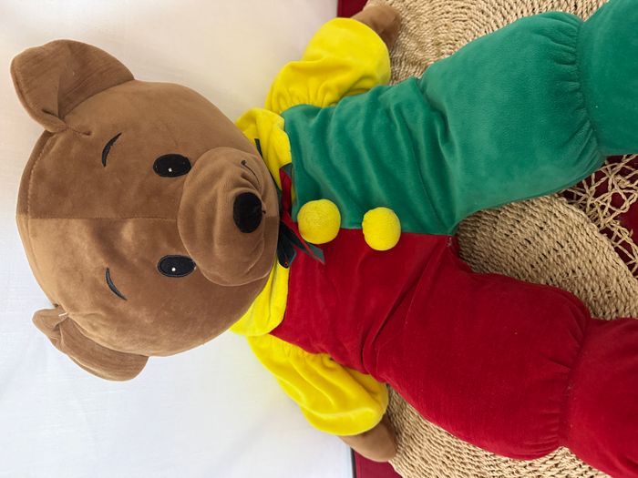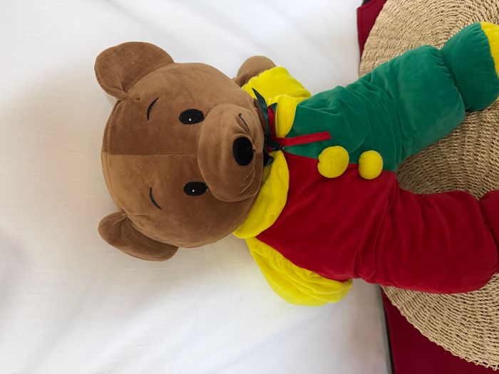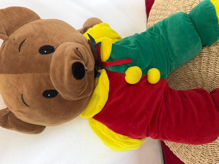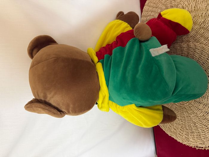 Grande peluche ours brun  rouge , jaune , vert  vintage - photo numéro 7