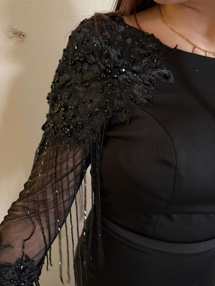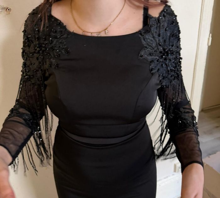 Robe de soirée taille 36 très jolie avec de magnifiques détails perle et dentelle acheter dans une boutique special robe de mariée et robe de soirée