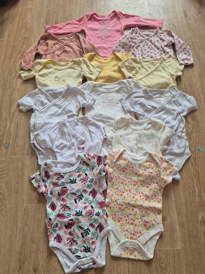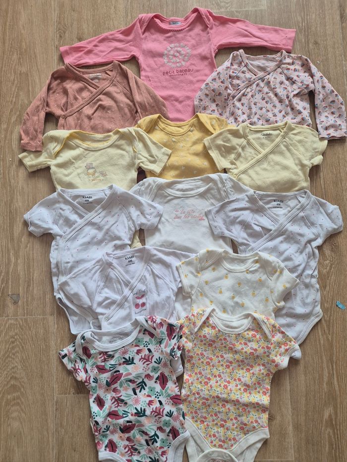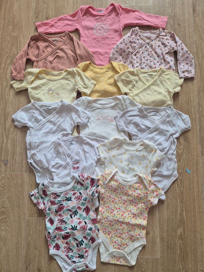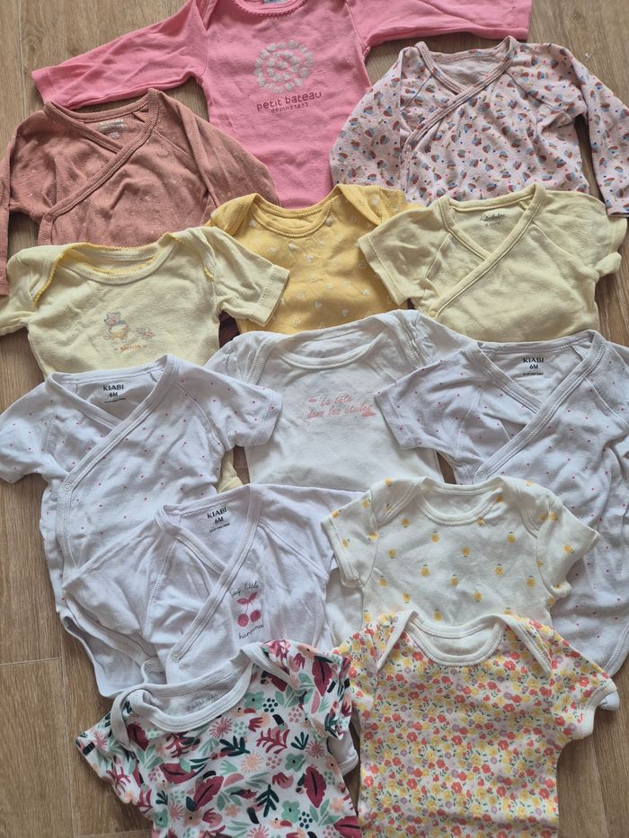 Gros lot 13 bodies fille taille 6 mois Manches courtes Sauf 3 bodies manche longue Tres bonne état Plusieurs marque différentes kiabi primark cantimini petit béguin petit bateaux primark