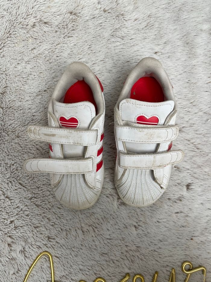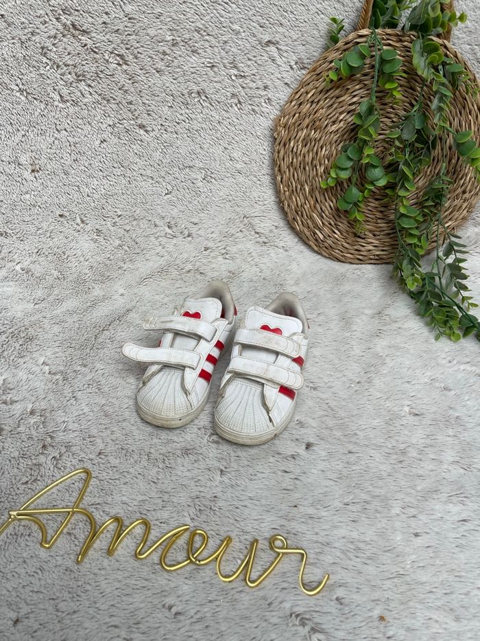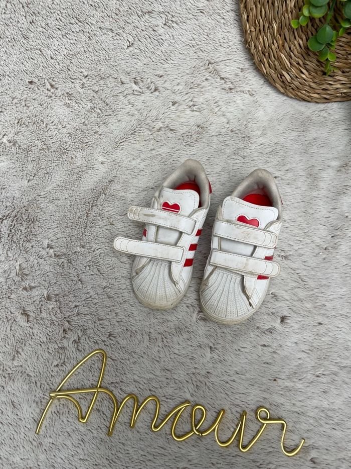 Basket superstar blanche à cœur rouge À scratch Taille 26 Adidas Tres bonne état