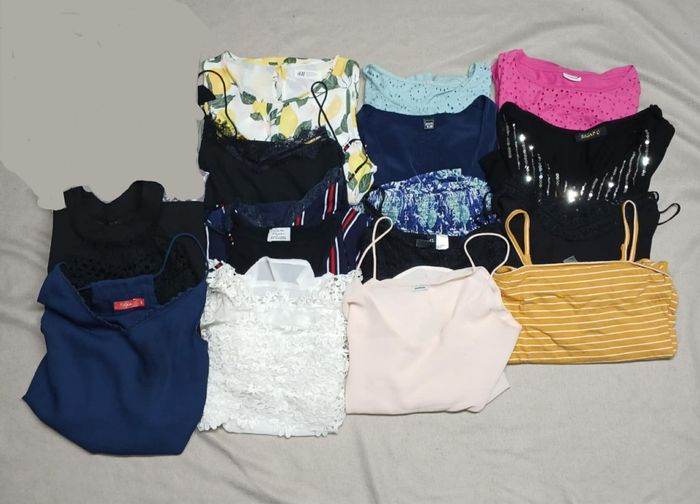 Gros lot de 17 vêtements femme. Hauts, tuniques, robes. Taille XS-S-M-L-XL