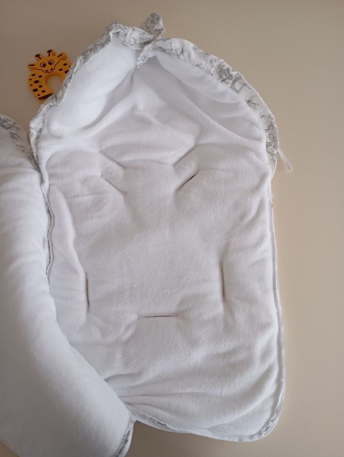Nid d'ange bébé gaze de coton et polaire savane gris  - photo numéro 2