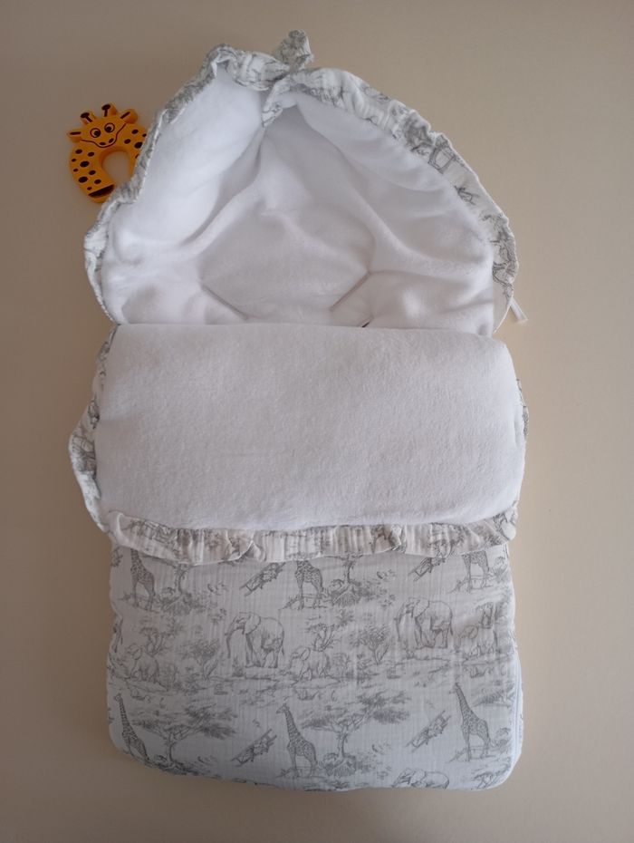 Nid d'ange bébé gaze de coton et polaire savane gris  - photo numéro 1