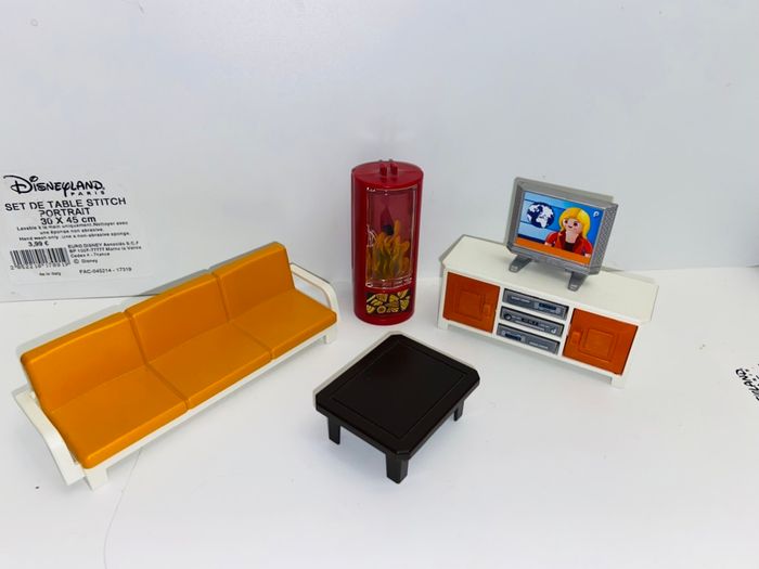 Pour maison playmobil Canapé fauteuil Meuble de tv Télévision Table de salon Cheminée