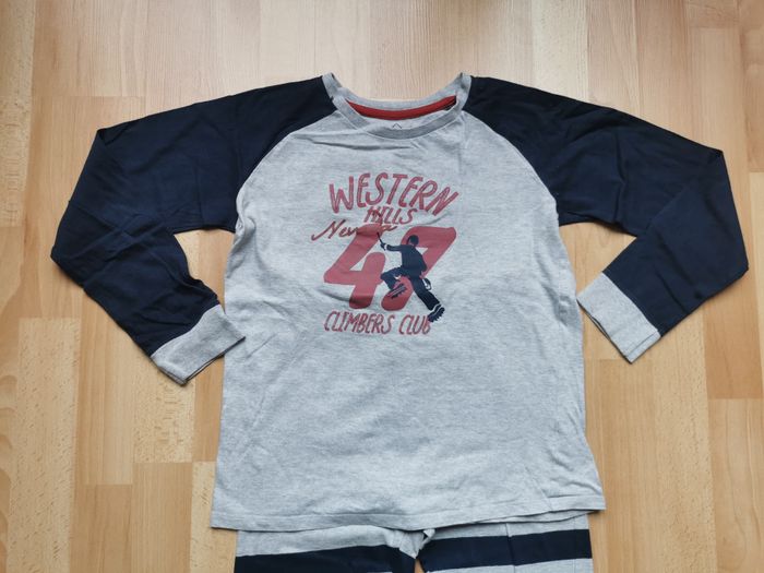 PYJAMA TEX GARCON 9/10 ANS Pyjama TEX, 2 pièces bleu et gris motif grimpeur avec t-shirt et pantalon TRES BON ETAT !!!