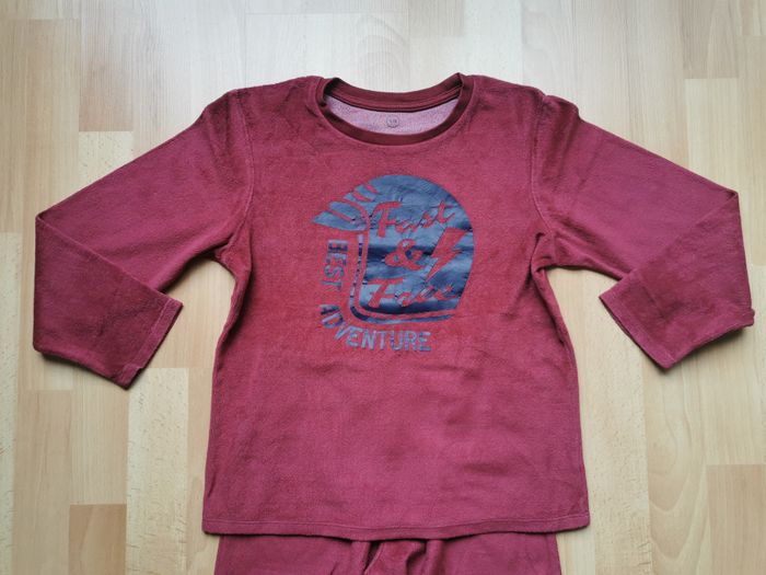 PYJAMA TEX GARCON 9/10 ANS Pyjama TEX, 2 pièces bordeaux avec t-shirt et pantalon TRES BON ETAT !!! (petites tâches sur le pantalon, à peine visibles, d’où le faible prix)