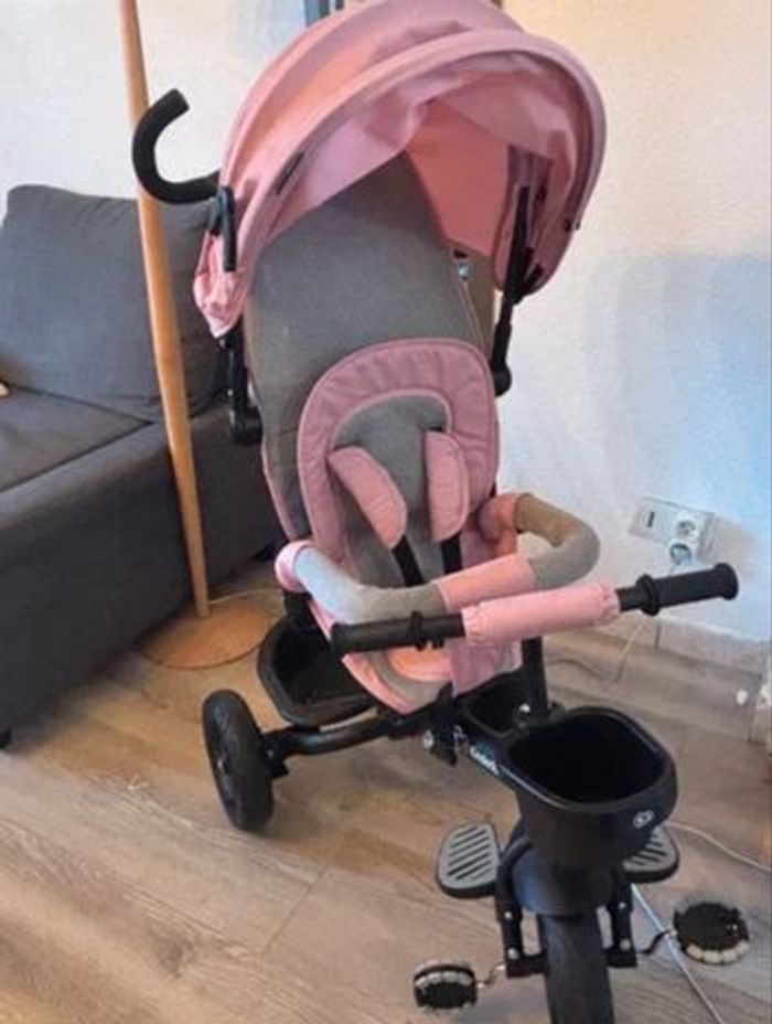 le tricycle pliable permet des configurations adaptées à l'âge de l'enfant, il est possible de rouler face ou dos à la route. Il peut être utilisé de multiples façons, selon le niveau de développement de la motricité de l'enfant. Dès l'âge de 9 mois et jusqu'à 5 ans environ. Il est équipé de sangles réglables, d'un arceau amovible et entièrement détachable, d'un frein robuste, d'une fonction roue libre et de roues antichocs et anti-crevaison. FONCTIONNEL : les différents composants (poignée parentale, arceau, capote) s'enlèvent facilement sans outils. Vous pouvez facilement le plier pour le transporter ou le ranger. Il dispose d'une poignée parentale réglable sur 3 niveaux. PRATIQUE : il possède une selle confortable, ainsi qu'une grande capote pour protéger du vent et faire de l'ombre. Il est doté d'un dossier haut et de repose-pieds pour permettre à votre petit de se reposer après avoir joué.