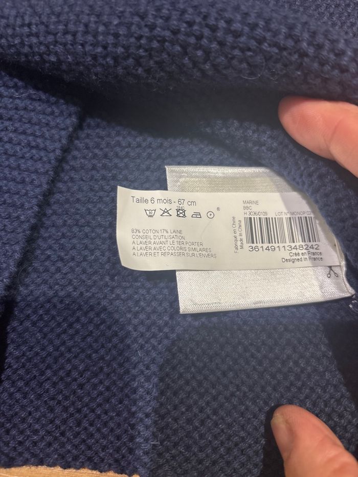 Gilet neuf unisexe Prix neuf 24,99€ Il y a écrit 6 mois-67 cm mais on me propose 9 mois 67 cm