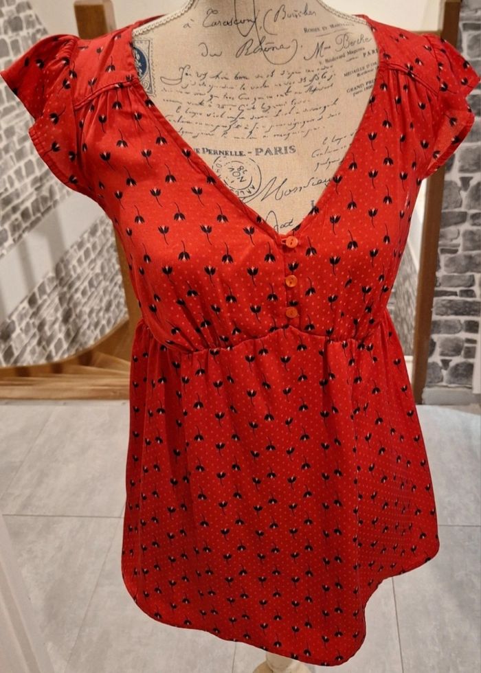 Longue blouse fluide rouge fleurie - photo numéro 1