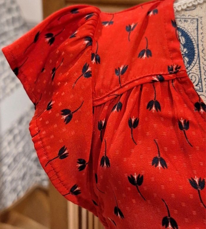 Longue blouse fluide rouge fleurie - photo numéro 5