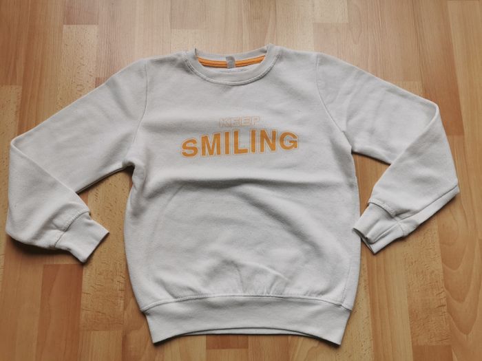 SWEAT TEX GARCON 9/10 ANS Sweat TEX beige inscriptions orange TRES BON ETAT !!!