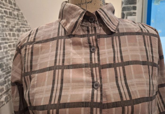 Robe tablier taille L toute boutonnée grise et mauve à carreaux - photo numéro 7