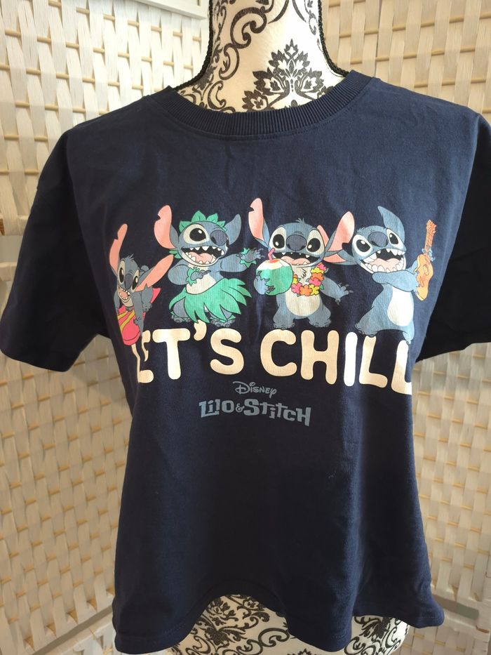 Joli t-shirt Disney Lilo & Stitch "Let's Chill"  Bleu Marine Disney femme TL / 40 - photo numéro 2