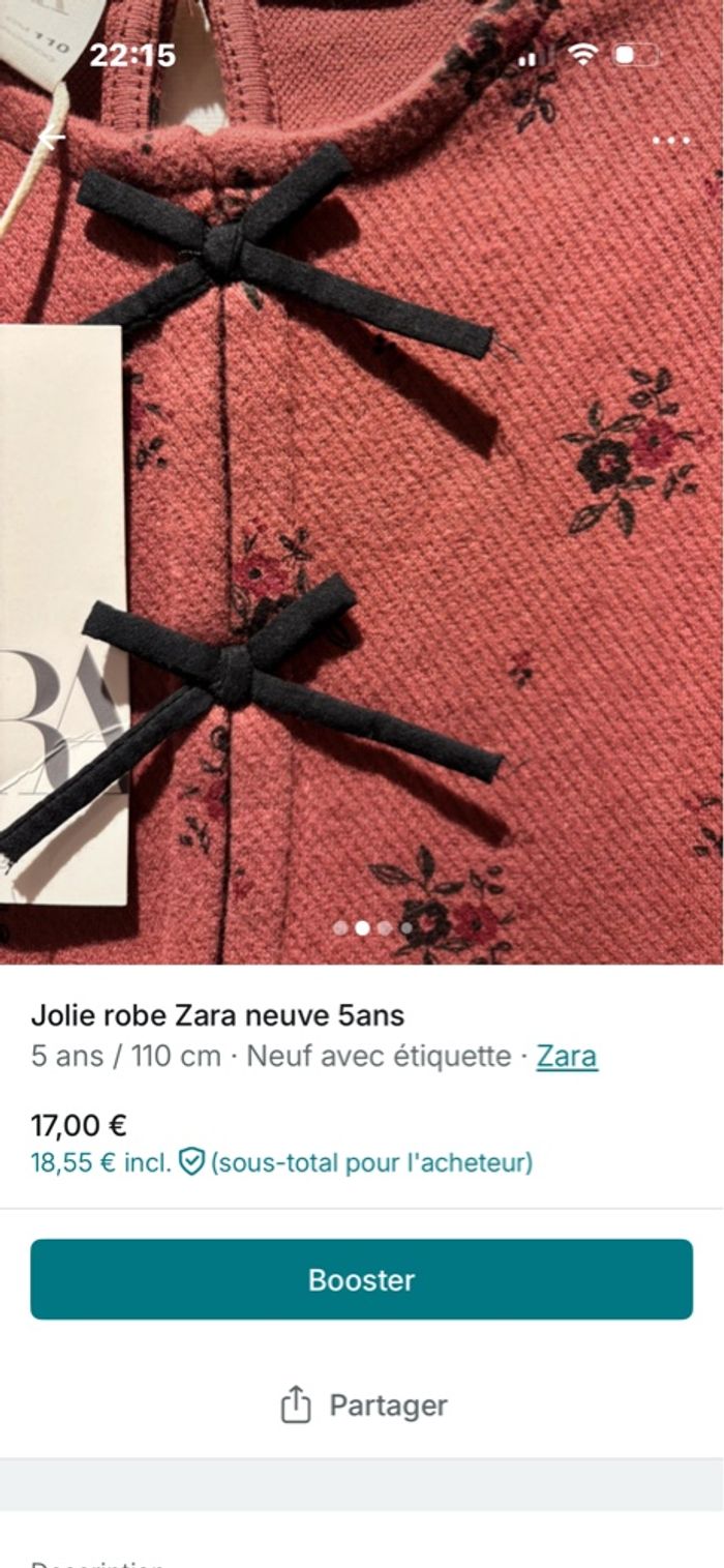 Jolie robe Zara neuve 5ans