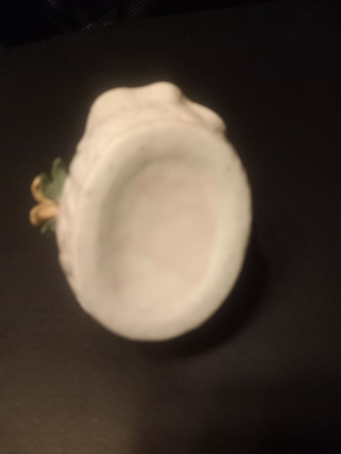 Petit panier décoratif Motifs fleurs Couleurs beige, bleu, vert et rose Matière céramique Dimensions approximative : 9cm de haut : 10cm de long : 9cm de large En très bon état