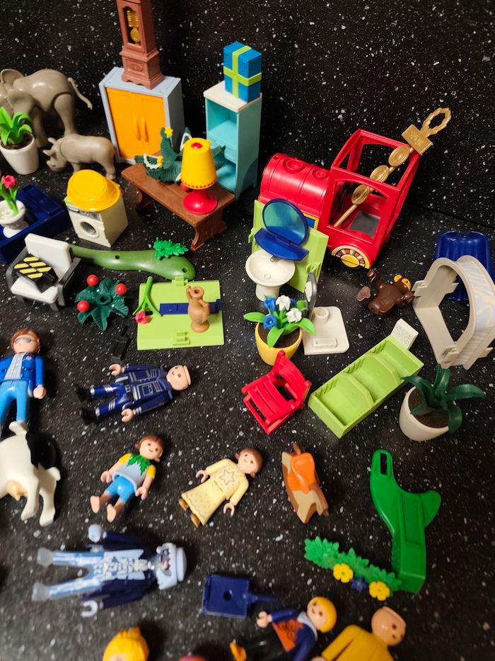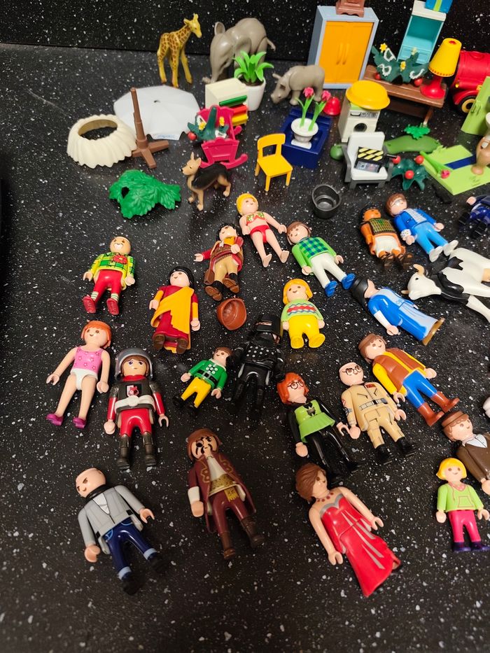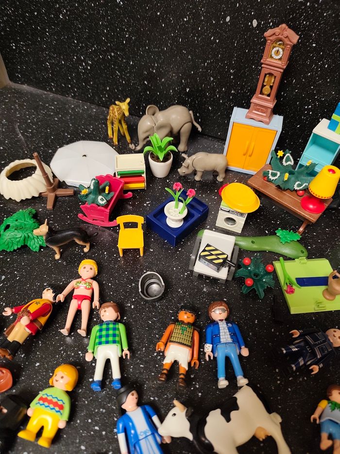 Lot de 38 figurines playmobil et quelques accessoires 📌 Envoi rapide et soigné 📌 Maison non fumeur et sans animaux Il s'agit d'objets d'occasion ayant donc déjà servi, ils peuvent parfois présenter des traces d'usage et d'usure , merci de bien regarder les photos .