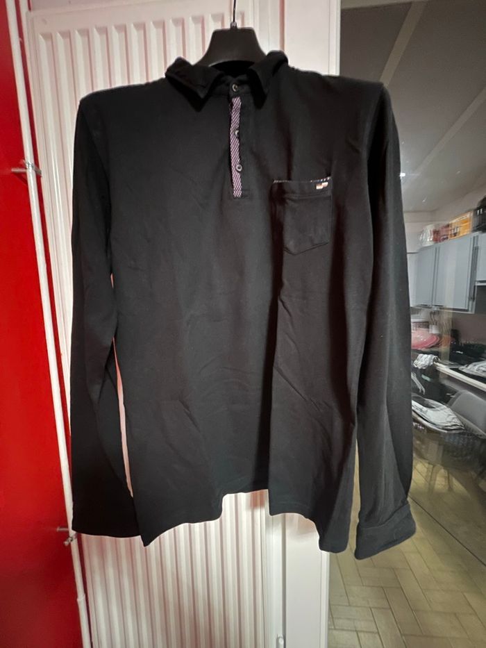 🖤 Polo manches longues noir Oaks Valley, taille L ✨ Détails contrastés à l’intérieur du col et des poignets 👔 Poche poitrine pratique 🤍 Double boutonnage aux poignets 🧵 Bon état 📌 Étiquettes de marque et de taille présentes #polohomme #polonoir #hautnoir #vetementhomme #modehomme