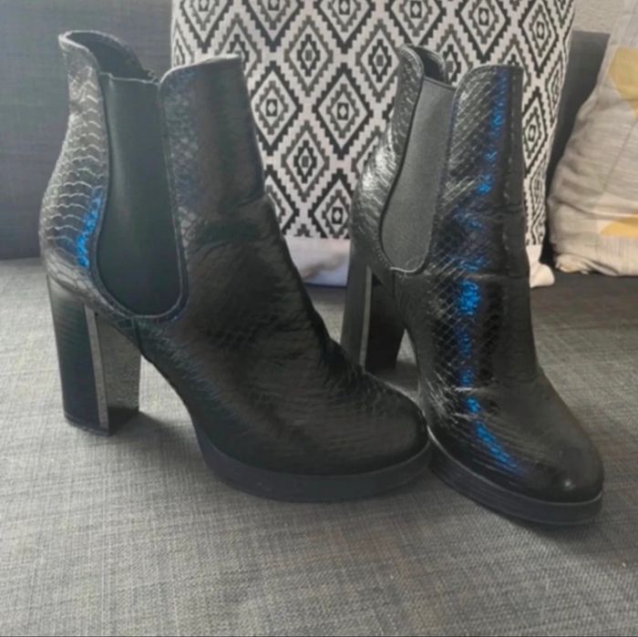 Bottines effet python Pointure 36 Très bon état, elles n’ont pas beaucoup été portées, juste un peu griffée sur une chaussure cela ne se voit pas porté