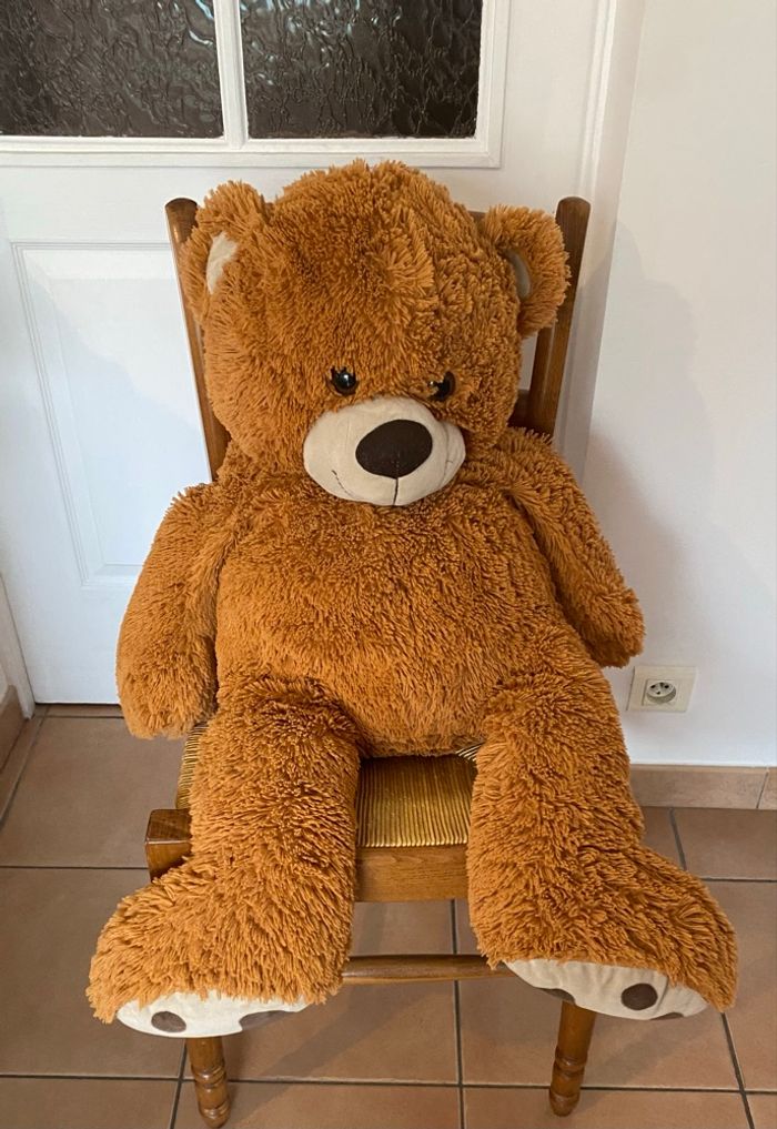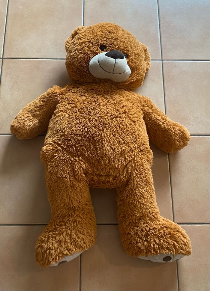Grande peluche ours Environ 85/90 cm Étiquette effacée et un peu bouloché au niveau du nez mais il est en très bon état général Vous achetez ce que vous voyez sur les photos