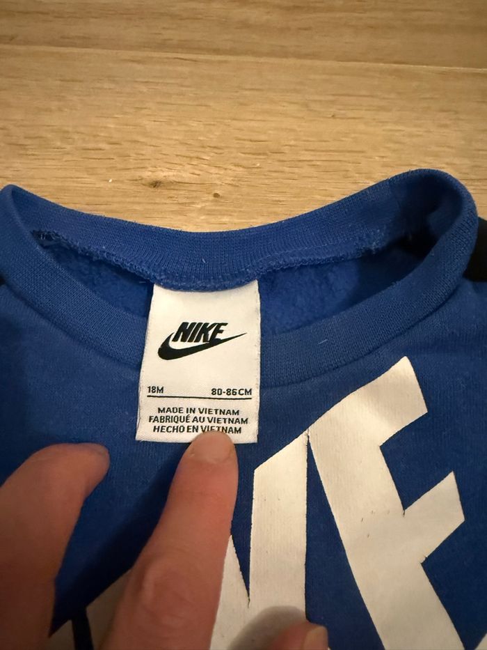 Jogging Nike bleu, très bon état (uniquement un léger accroc au niveau des genoux voir photo) Taille 18 mois (80-86cm)