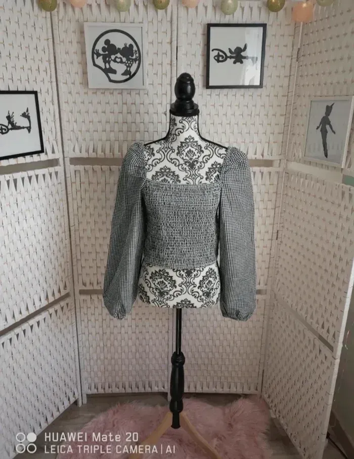 💕joli crop top noir et blanc smocké femme TL / 40 BZB 💕 - photo numéro 11