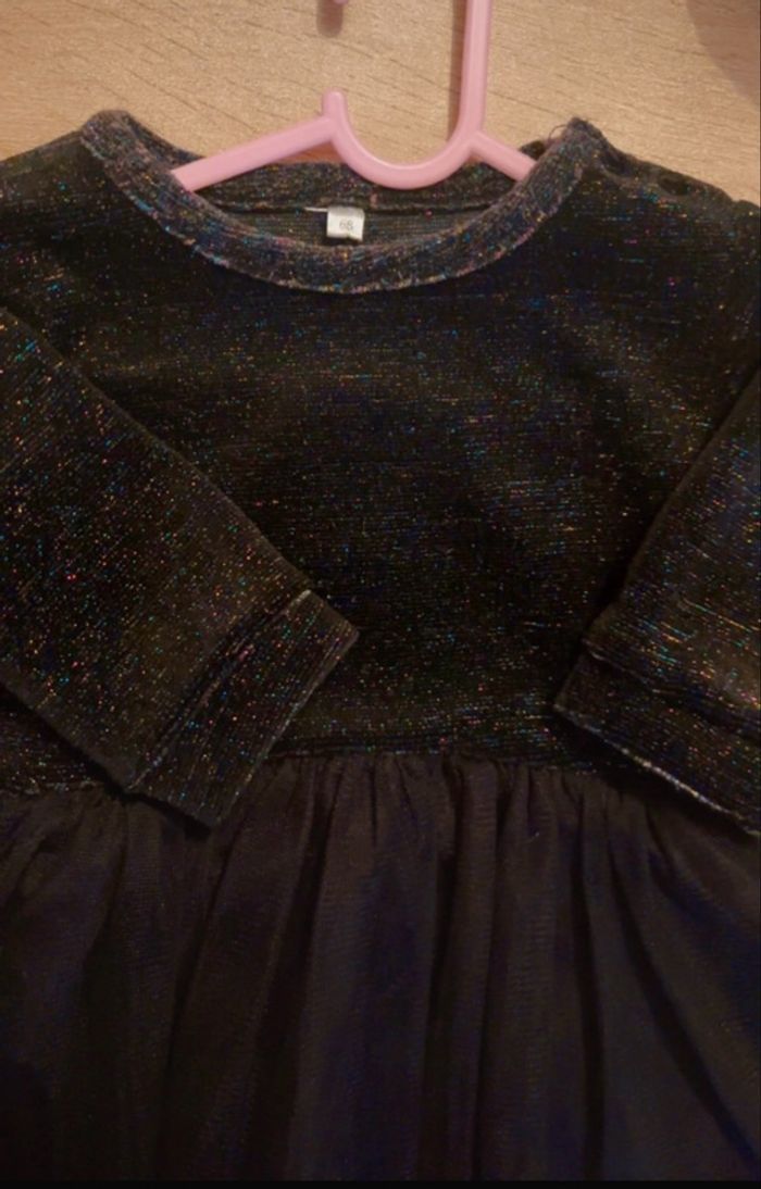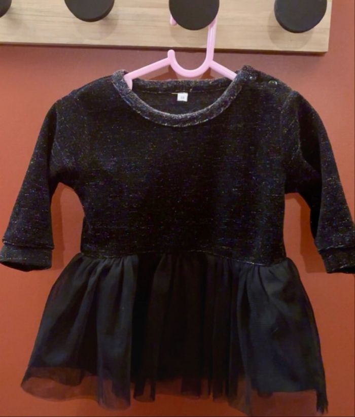2 jolies robes à manches longues, idéales toutes les saisons ou les occasions spéciales Détails : • Très bon état • 1 robe bordeaux avec jupe en tulle et petits motifs étoiles, inscription "Daddy's Girl" • 1 robe noire avec jupe en tulle pailleté, élégante et facile à assortir