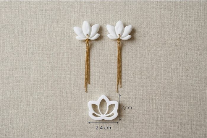 Emporte-pièce pampille en forme de fleur lotus ajourée, au design délicat et équilibré. Cette forme florale apporte une touche élégante et raffinée aux créations de bijoux, idéale pour des boucles d’oreilles légères et aériennes. Le motif ajouré met en valeur les textures, les effets de matière et les finitions, tout en conservant une belle lisibilité de la forme une fois montée. Détails : • Forme : pampille fleur lotus ajourée • Dimensions : – Largeur : 2,4 cm – Hauteur : 2 cm • Vendu à l’unité (1 emporte-pièce) • Couleur : peut varier selon la fabrication • Fabriqué en France Utilisation : Convient pour la création de pampilles, boucles d’oreilles, pendentifs et projets créatifs DIY. Informations : • Envoi soigné • Usage créatif uniquement