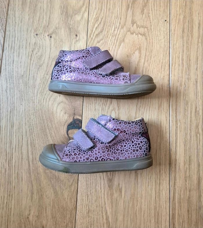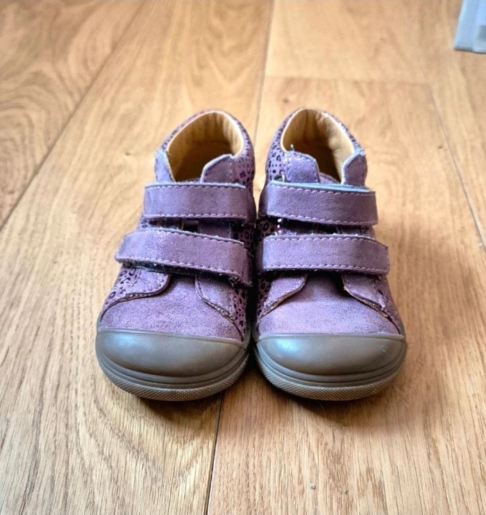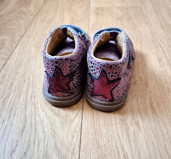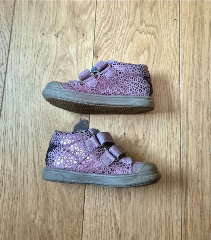 * État: Très bon état, peu portées (voir photos) * Taille: 21 (indiquée) * Couleur: mauve (indiquée) * Matière: en cuir * Fermeture par scratch pour faciliter l'enfilage des bottines * Impression panthère brillante * Empiècement étoile ♥️🛍 N’hésitez pas à visiter le reste de mes ventes 😊