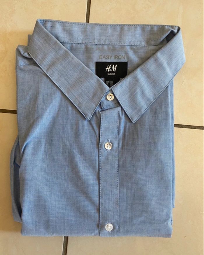 📐Aisselle à aisselle 65 cm 📐Taille XXL 🔖 Marque : H&M 👔Coupe slim fit ✅2 bouton de secours 🧼 État : très bon. Porté 1 fois