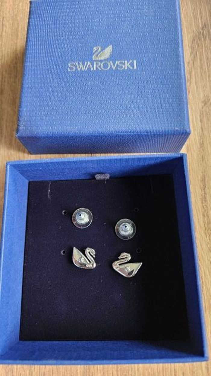 Boucles d'oreilles Swarovski officiel, swan strass - photo numéro 1
