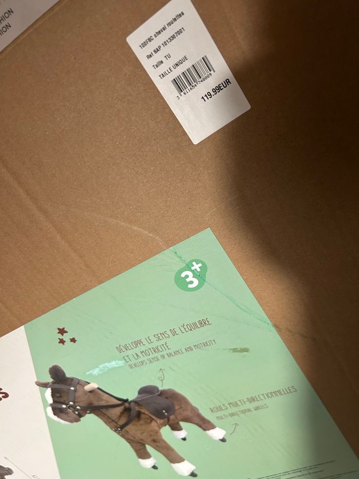 Neuf dans son carton bien grand, à roulette façon pousse pousse ..