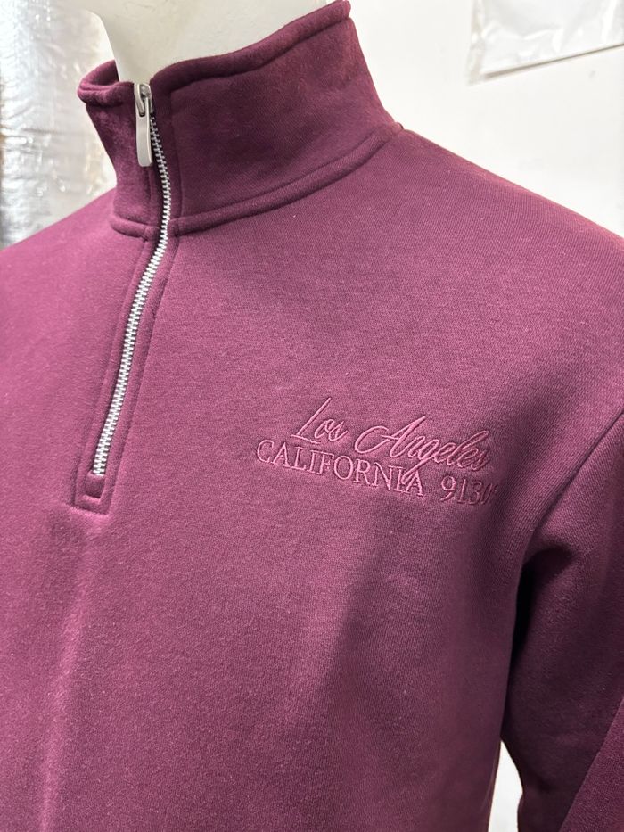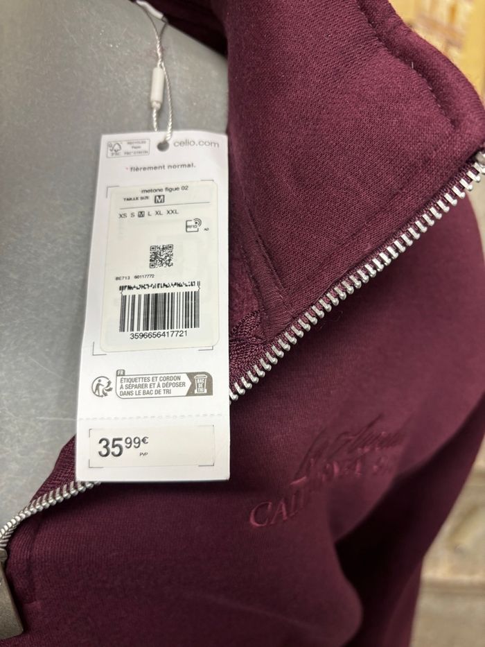 Sweatshirt bordeaux avec fermeture éclair et inscription "Los Angeles California 91305". Neuf avec étiquette. ⭐️ État : 10/10 👕 Taille : M 🎨 Couleur : Bordeaux 📦 Livraison rapide et soignée.