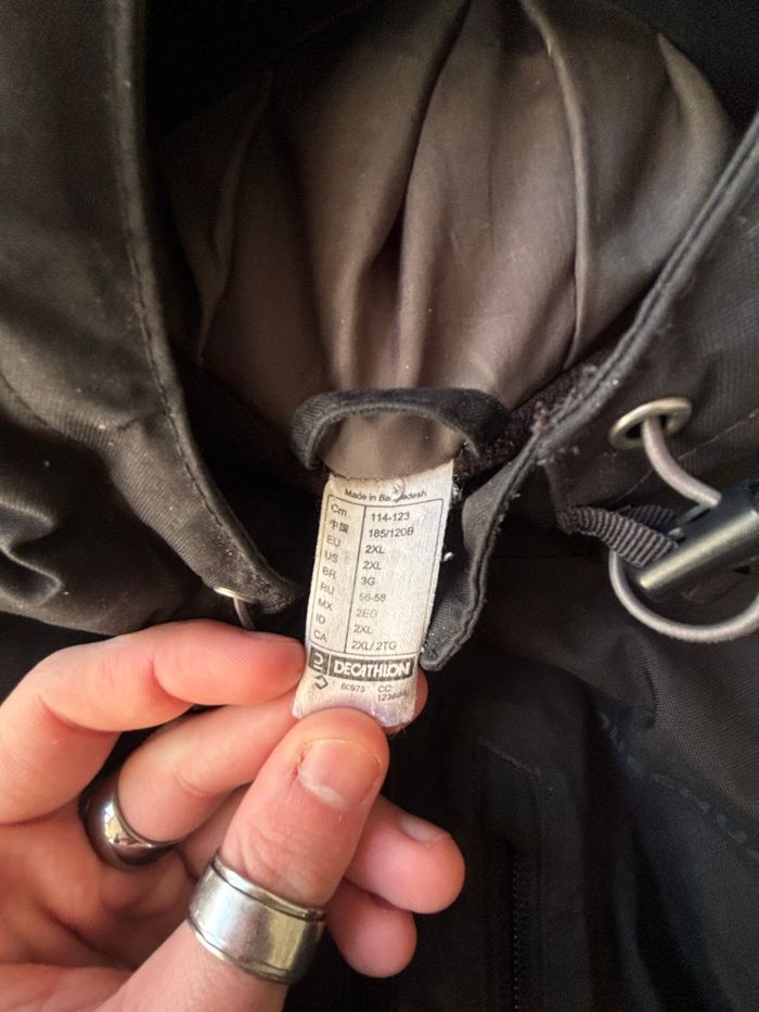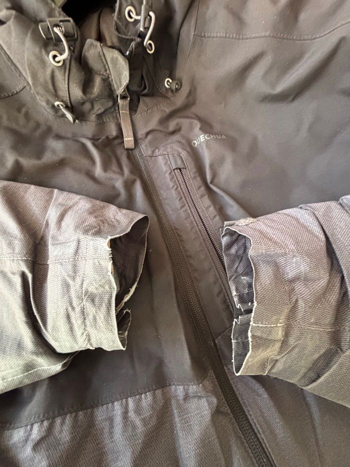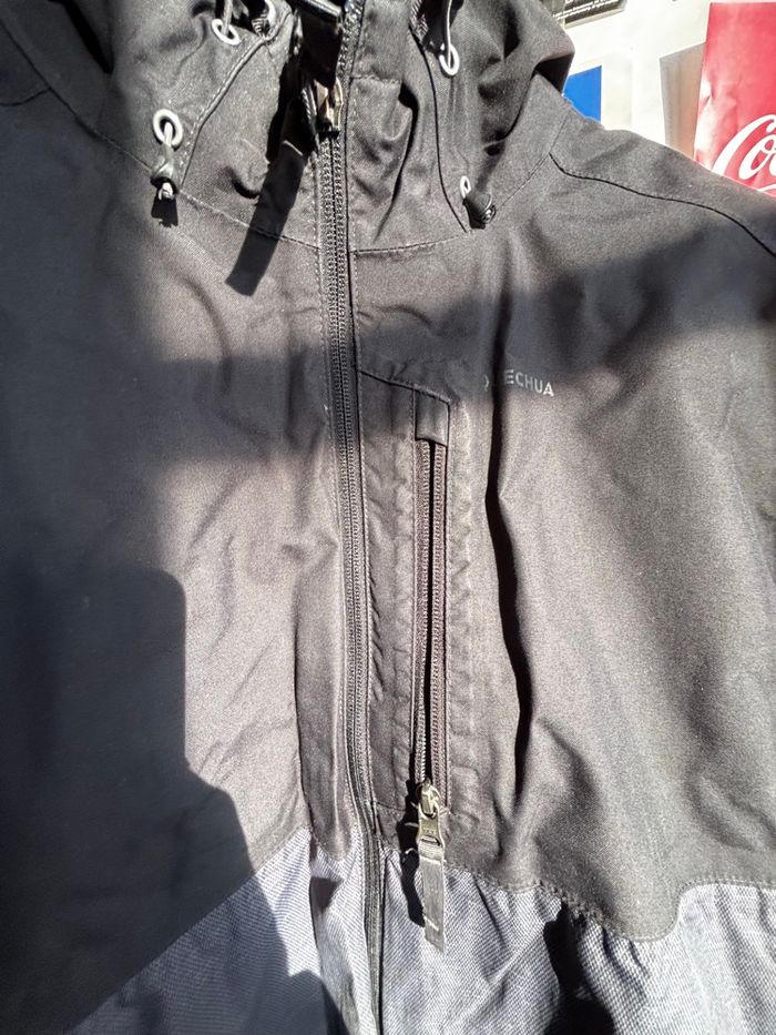 Doudoune à capuche imperméable Quechua en noir et gris, en bon état général avec quelques signes d'usure mineurs. ⭐️ État : 7/10 (usure légère sur les manches) 🎲 Taille : XXL 🎨 Couleur : Noir et gris 📦 Livraison rapide et soignée