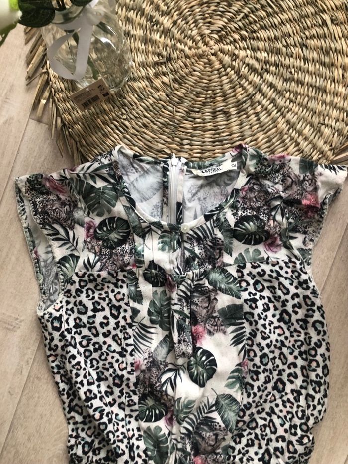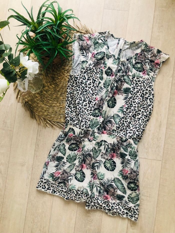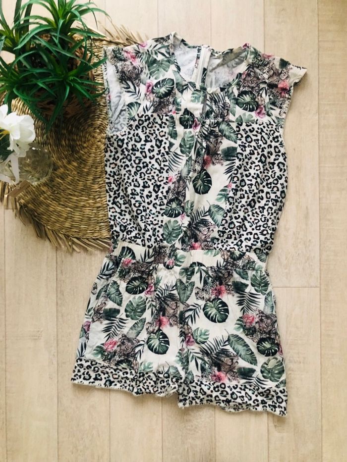 Combinaison short de marque Kaporal. Taille 12 ans sur l'étiquette mais taille plutôt comme un 10 ans. Très beau motif jungle. Quasi neuve. 🅰️.