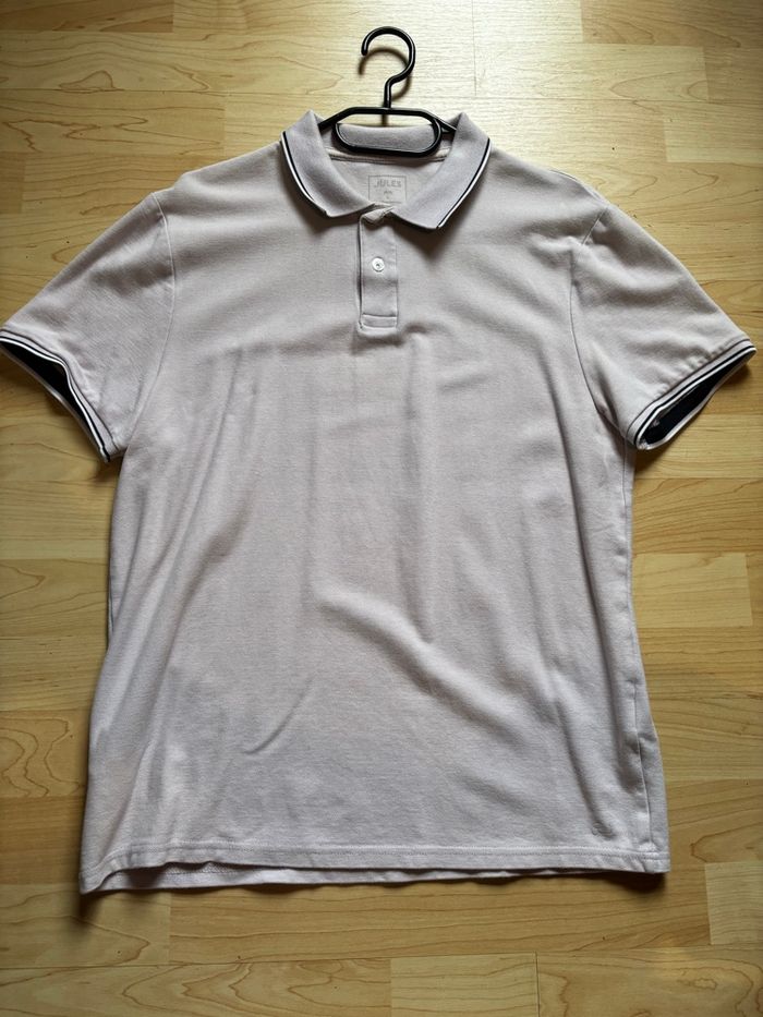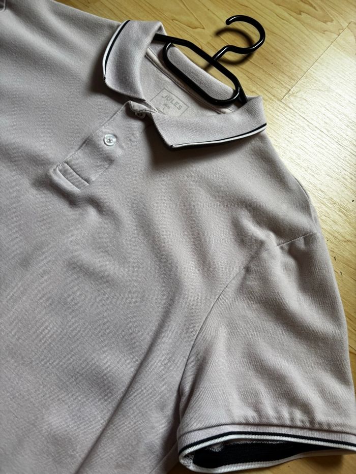 Polo Jules en bon état, de couleur lila clair avec des détails noirs sur le col et les manches. 👕 x2 Polos Pack 10€❌ 5€✅ 💜 Buy 1, get 1 FREE💙 (Jules Lila + Jules Bleu ciel) ⭐️ État : 8/10 🎲 Taille : L 🎨 Couleur : Lila clair 📦 Livraison rapide et soignée